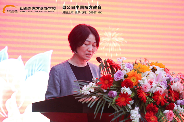 新东方烹饪学校于校长发表致辞,于校长指出:“今天,我们相聚在这里,共同开启2025年度美食营养师培训的新篇章。在这个快速发展的时代,餐饮行业正经历着深刻的变革。从街边小吃摊到国际化的连锁餐厅,从传统的中式美食到多元融合的世界料理,我们的餐饮市场日益繁荣,消费者的需求也愈发多元化和个性化。据相关数据显示,在过去的五年里,我国连锁餐饮企业的数量增长了30%,而消费者对健康营养美食的关注度提升了50%以上 。这充分表明,兼具美食烹饪技能与营养管理知识的专业人才,已成为当下餐饮市场的稀缺资源,更是推动行业可持续发展的关键力量。”